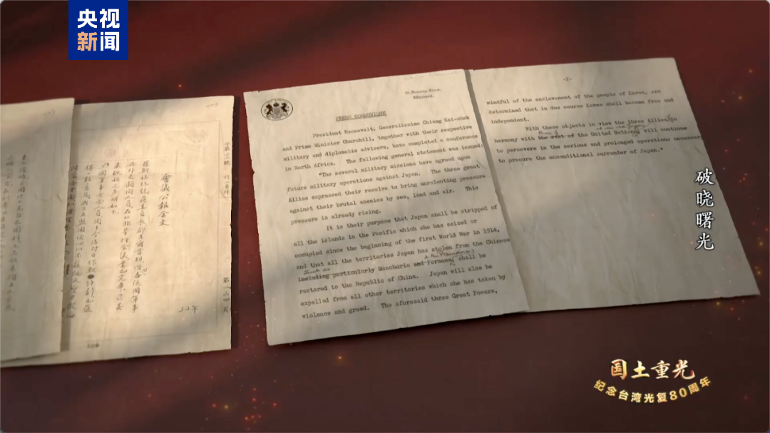 ខ្សែភាពយន្តឯកសារ«ការស្ដារអធិបតេយ្យភាពដែនដីឡើងវិញ-រំលឹកខួប៨០ឆ្នាំនៃការស្តារអធិបតេយ្យភាពតំបន់តៃវ៉ាន់មកវិញ»ត្រូវបានចាក់ផ្សាយ
