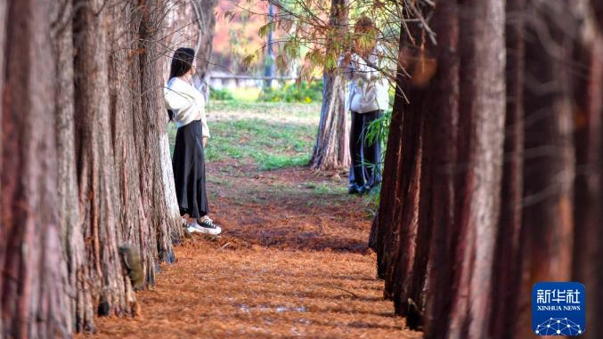 នៅដើមរដូវរងា ស្លឹកដើម Metasequoia ប្រែជាពណ៌ក្រហមគឺជាពេលវេលាដ៏ល្អសម្រាប់ការធ្វើទេសចរណ៍