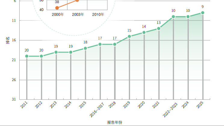 ចំណាត់​ថ្នាក់នៃ​សន្ទស្សន៍នវានុវត្តន៍​ជាតិចិនបាន​ឡើងដល់​លេខរៀង​​ទី​៩​លើ​សកលលោក